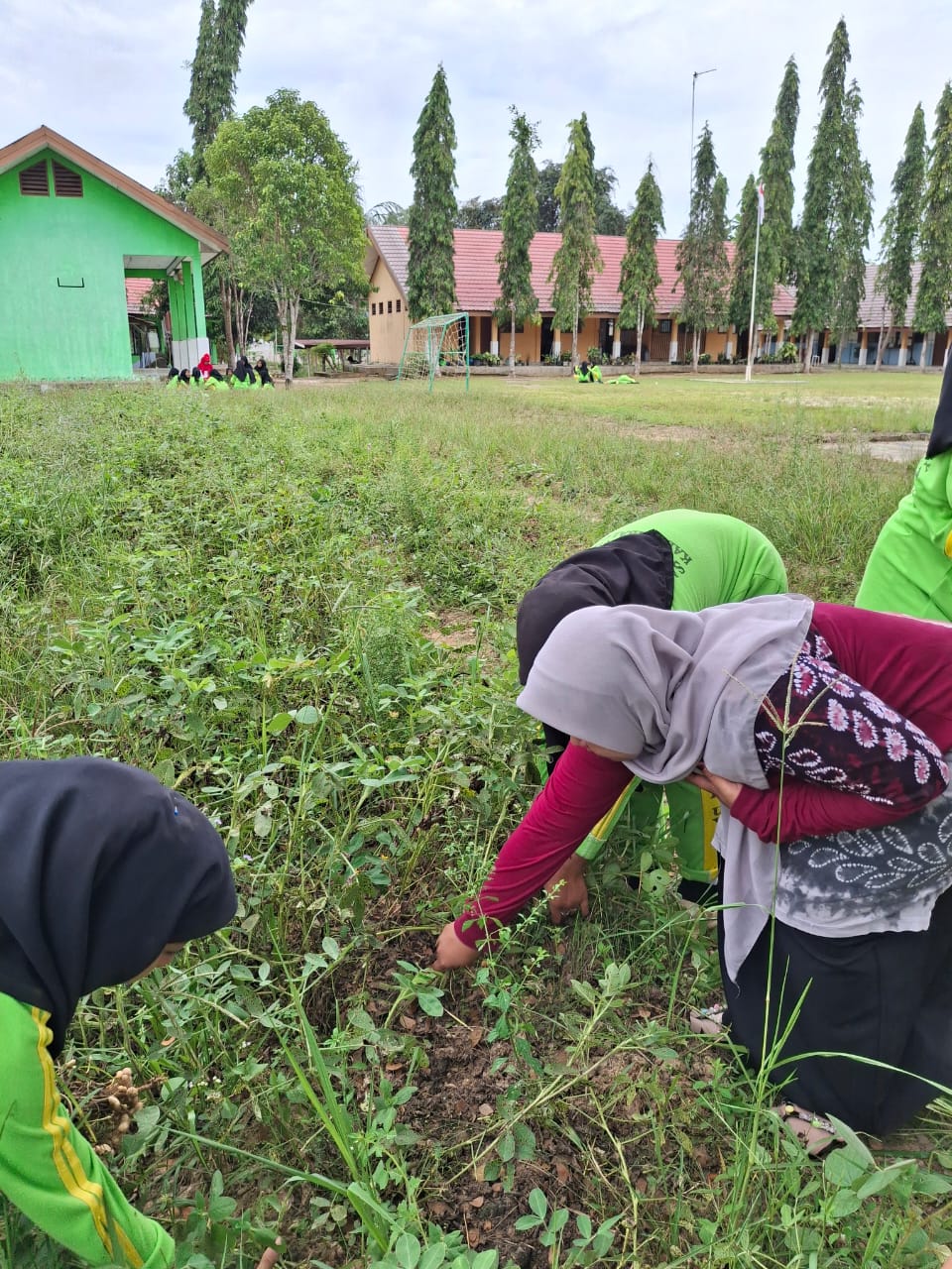 Di sela-sela bedengan kacang tanah, siswa bekerja tanpa membedakan latar belakang. Ada yang mencabut rumput liar (gulma), ada yang menggemburkan tanah. Mereka saling menghargai peran masing-masing demi satu tujuan: kebun yang subur.